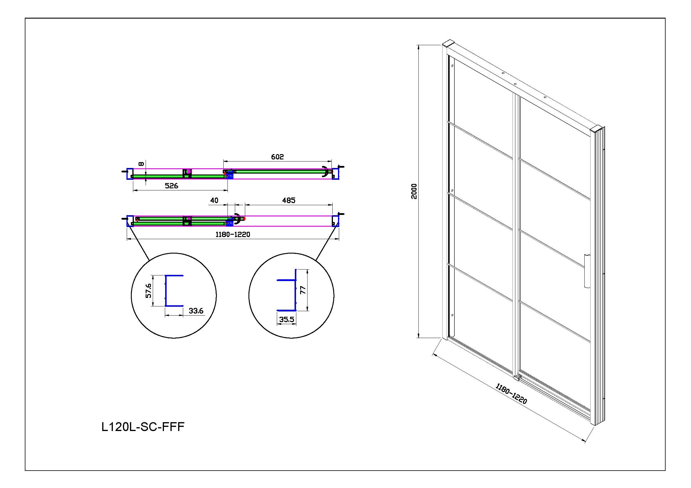 Brushed Copper Linea Soft Close FFF nis, vast glas L 120*200