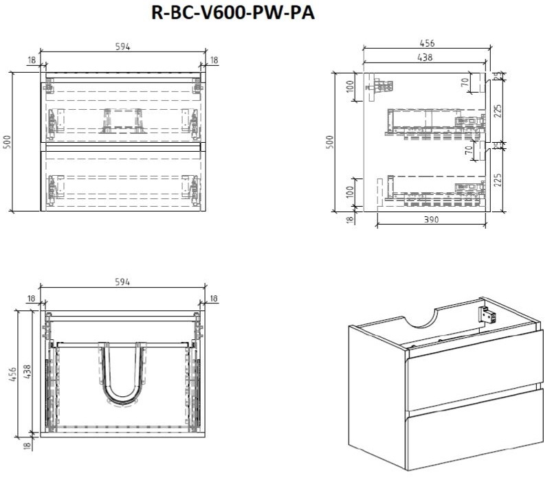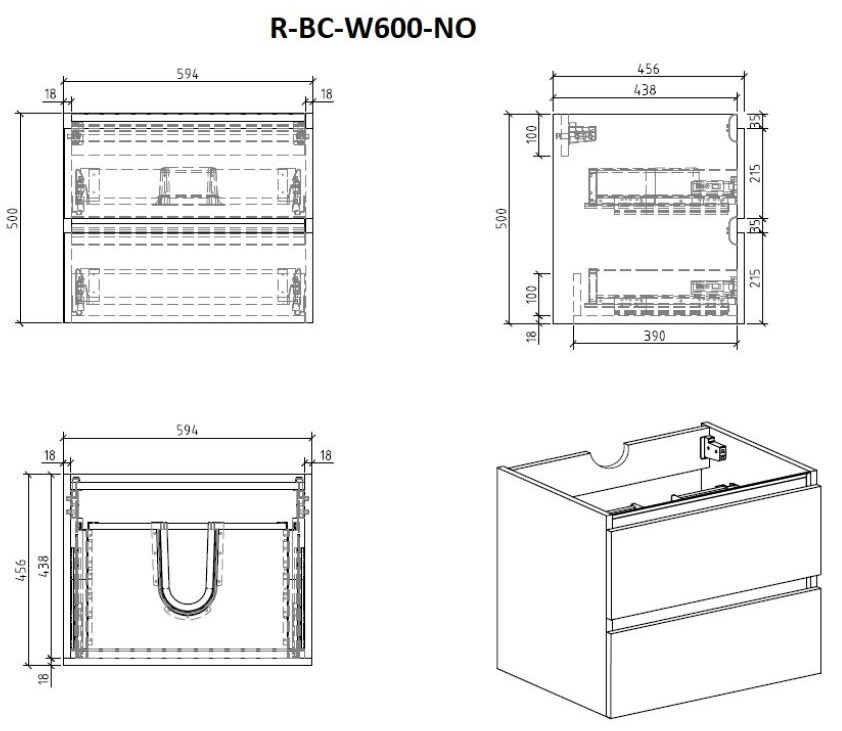 Onderkast 60*46*45 cm greeploos FSC-100%