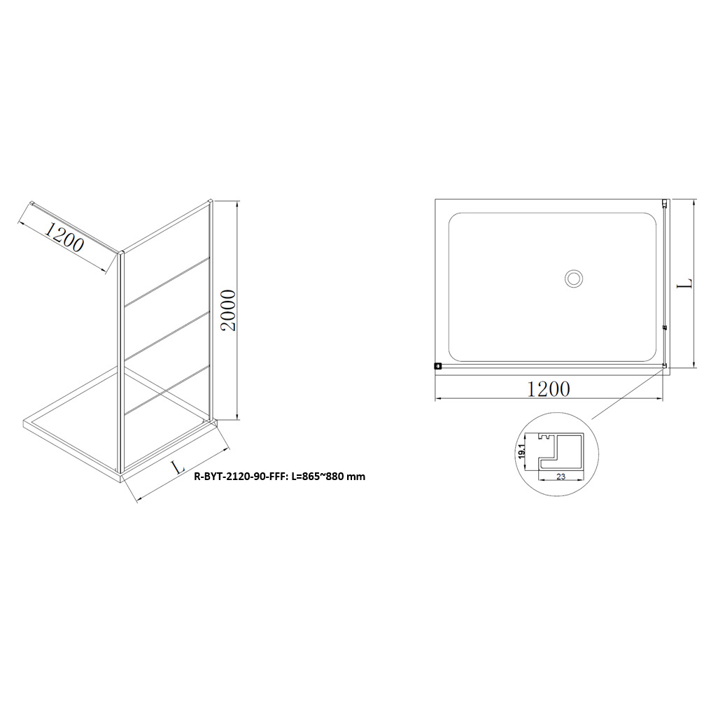 Priori GML Edition FFF douchewand 70*200 cm GUN METAL LIGHT