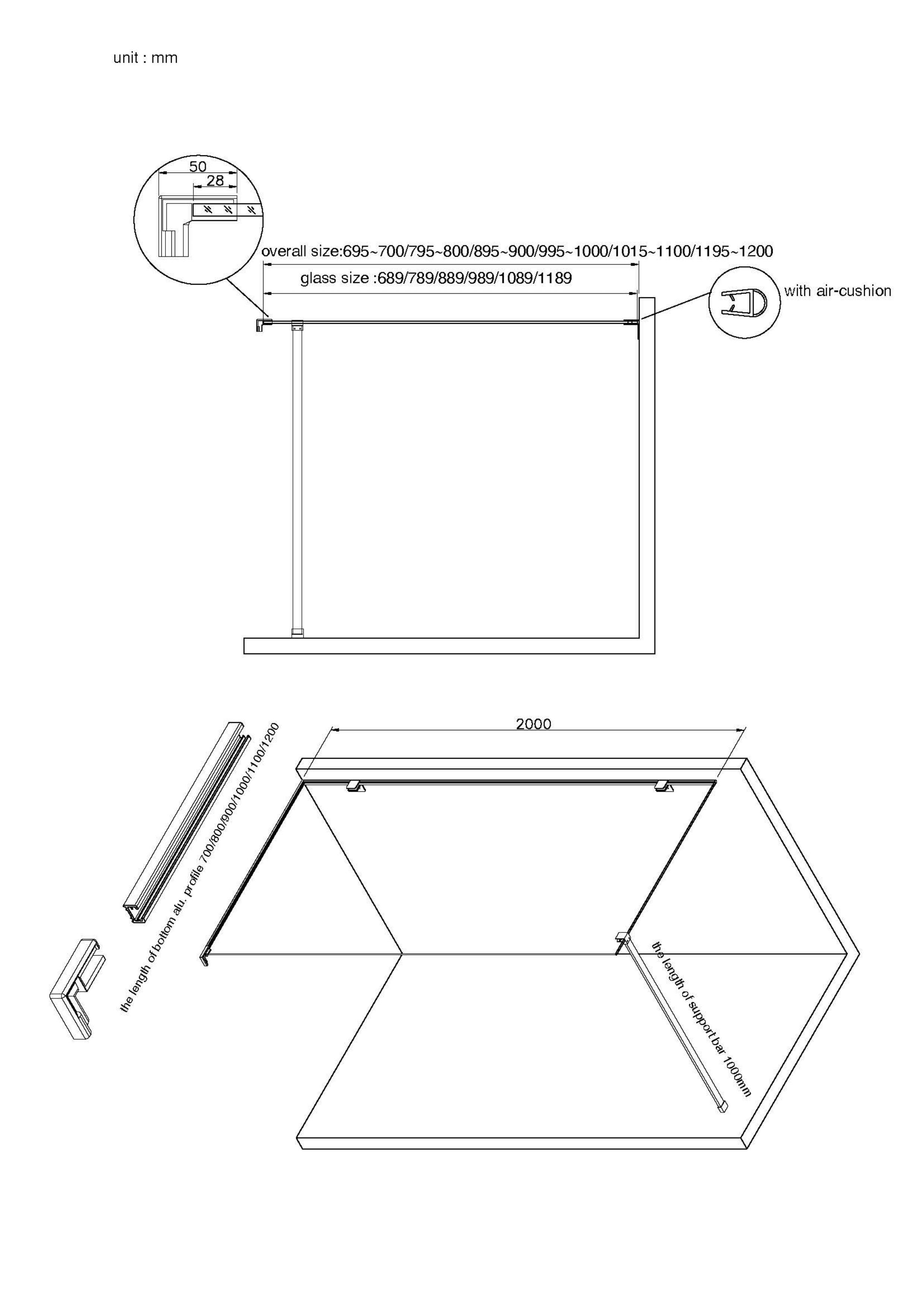 Glasplaat Lago side panel 90*200 cm