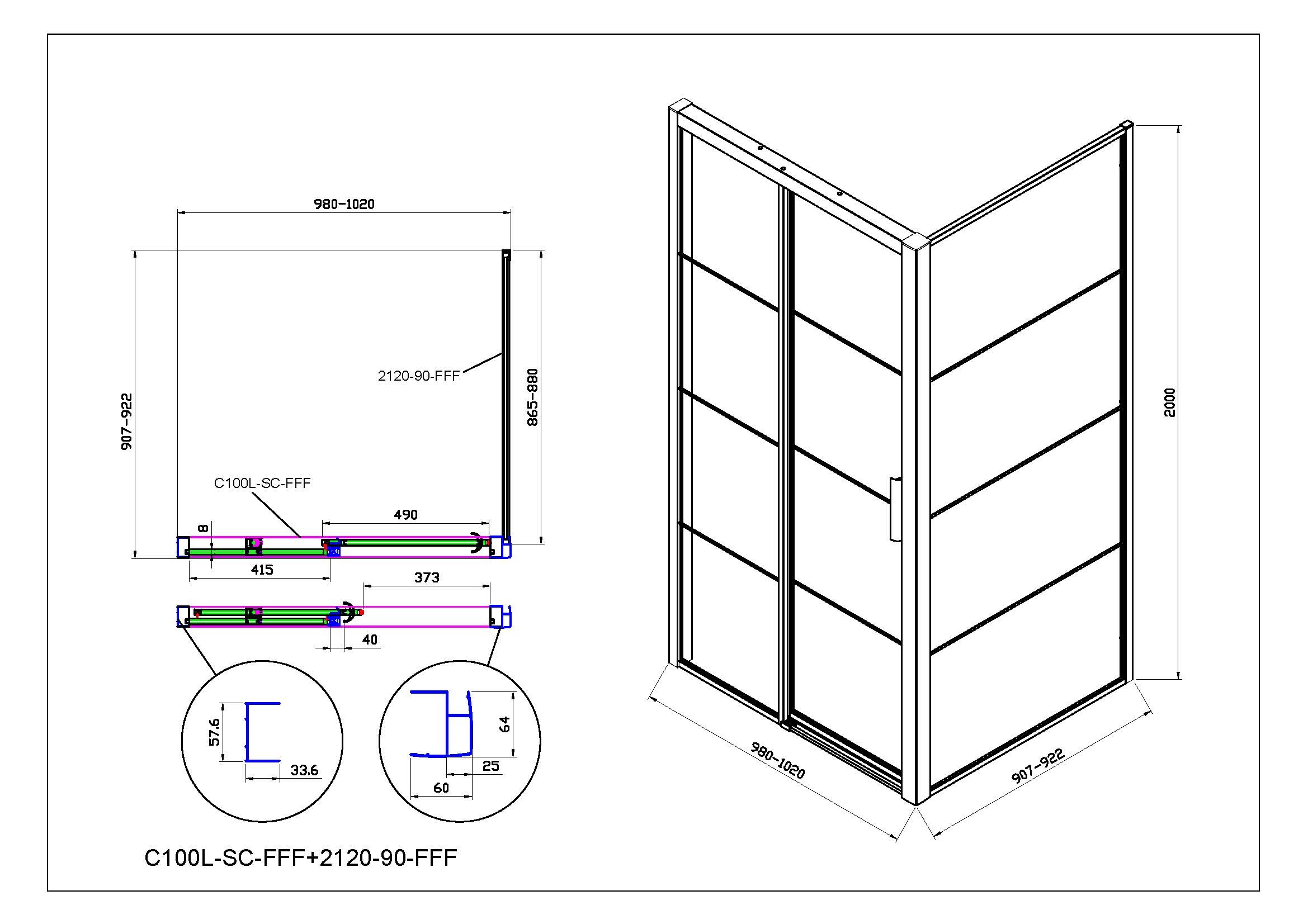 Black Edition Soft Close FFF, vast deel L, 100*200 cm