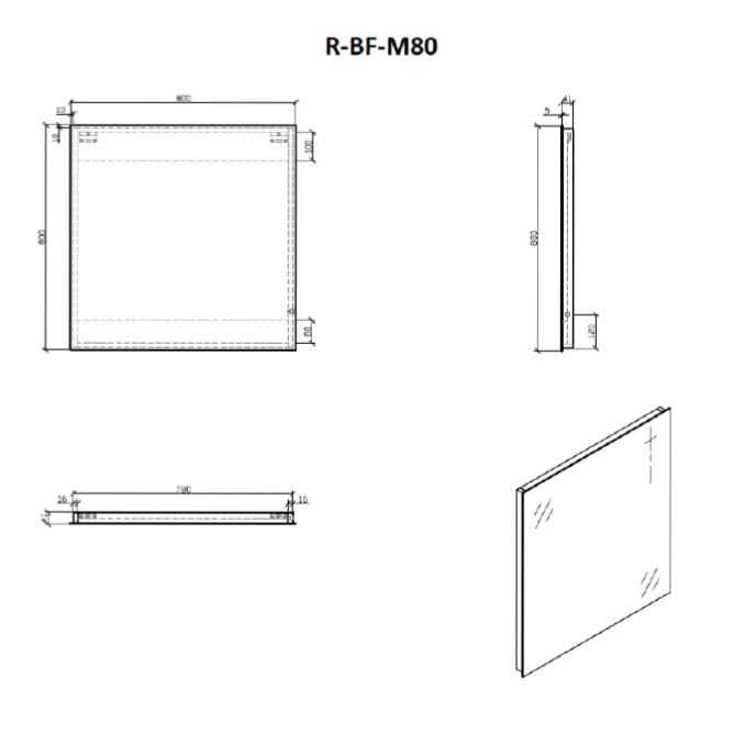 Spiegel 80*80 cm rechte hoeken FSC MIX